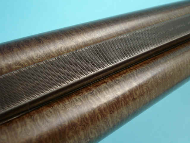 Serial no. 113019, 16 gauge, 32-inch side-by-side Damascus barrels with improved and