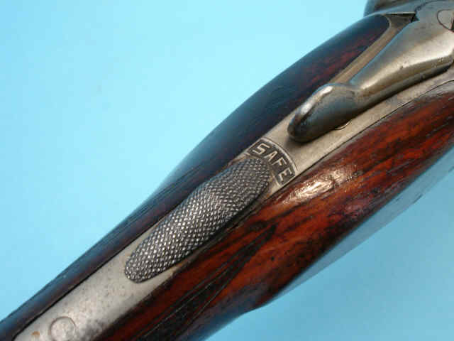 sights. Case-hardened frame. Thumb safety. Checkered walnut stocks. Incorrect replacement