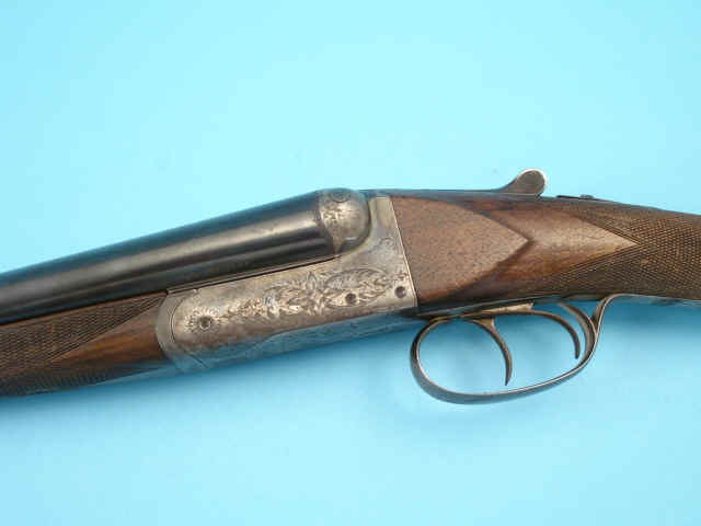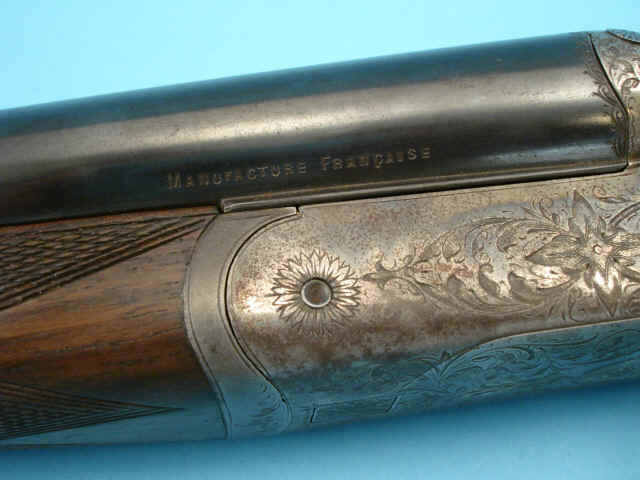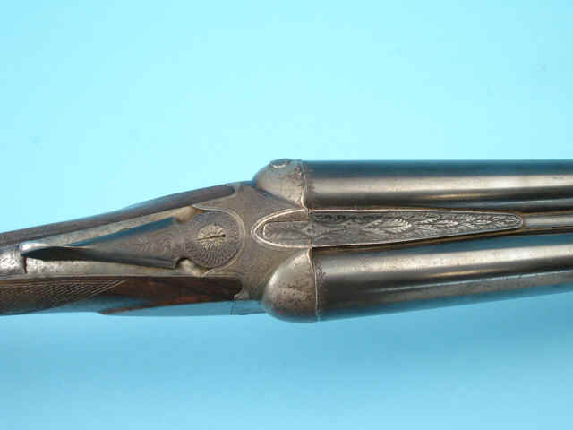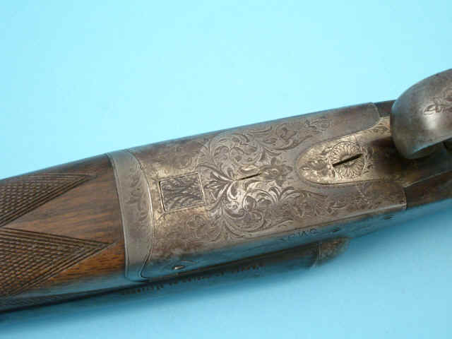 boxlock action with with floral engraving. Sideclips. Extractors. Non-automatic safety.