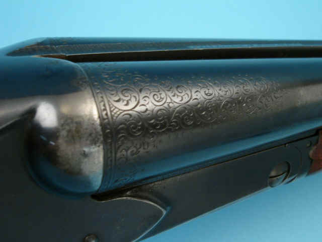 and underside of fore-end. Nick in right barrel at midpoint. Bright bores. Action shows