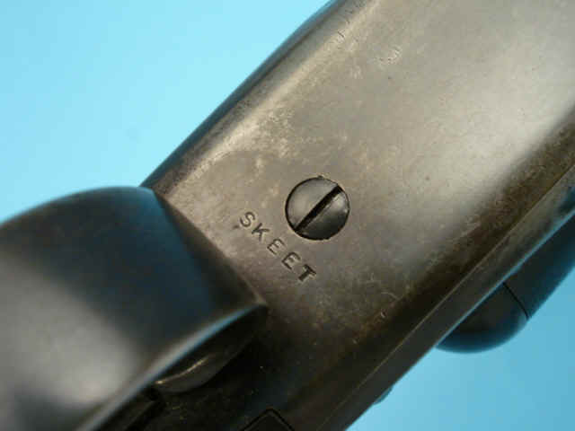 Winchester. Dual beads. Blued action with relief panels. Floorplate marked: Skeet.