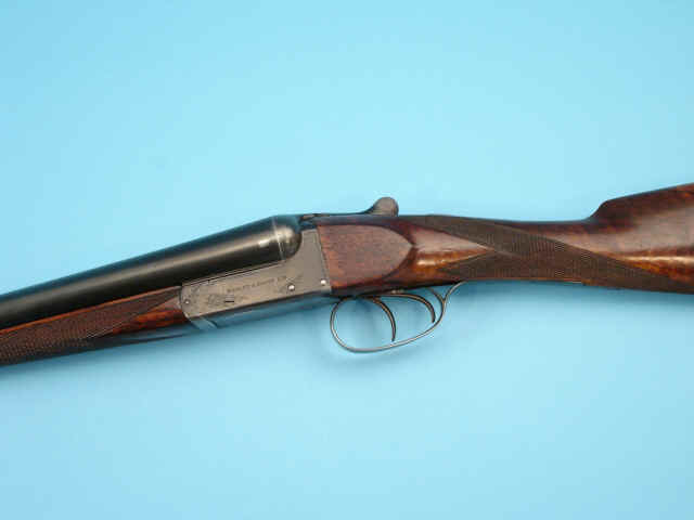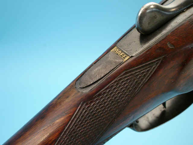 Ejectors. Automatic safety. Finely checkered straight-grip older replacement stock of