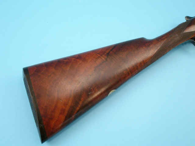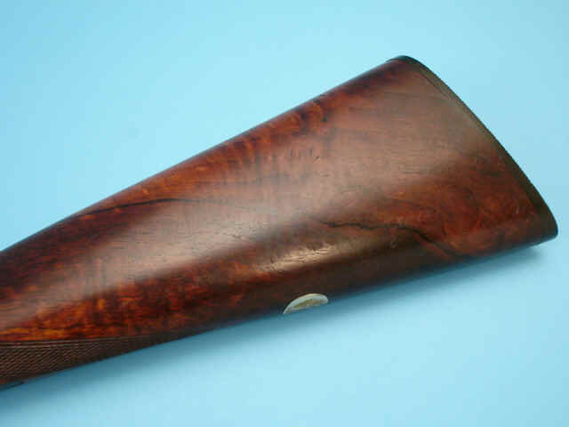 well-figured dark walnut. Horn buttplate. Vacant silver oval. Finely checkered splinter
