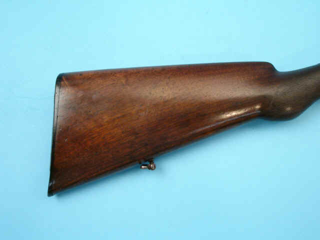 Checkered half-pistolgrip stock of straight-grained walnut. Horn buttplate.