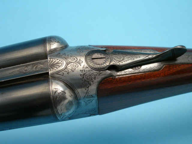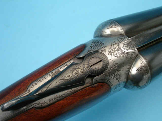 Serial no. 79707. 12 gauge. 28-inch barrels. Game rib. Case-hardened boxlock action,