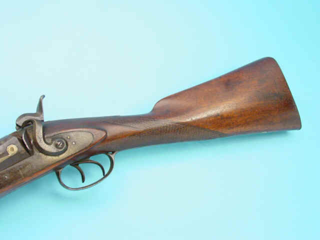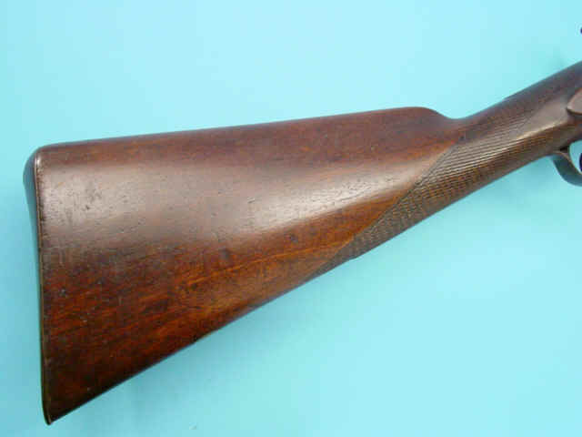 engraved lock; checkered walnut straight stock with steel buttplate.
