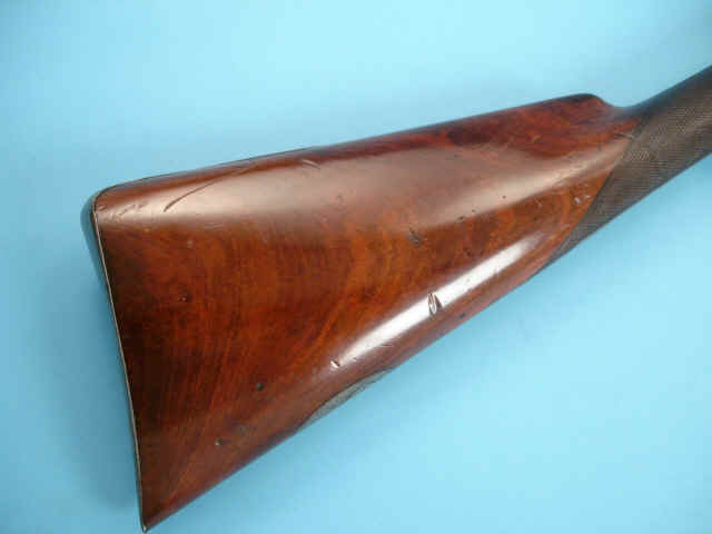 silver wrist escutcheon. Checkered fine walnut stocks with engraved steel hardware. Cap