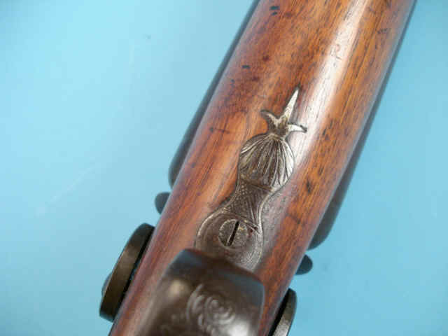 hammers. Checkered walnut stocks. Wooden ramrod with brass cap.