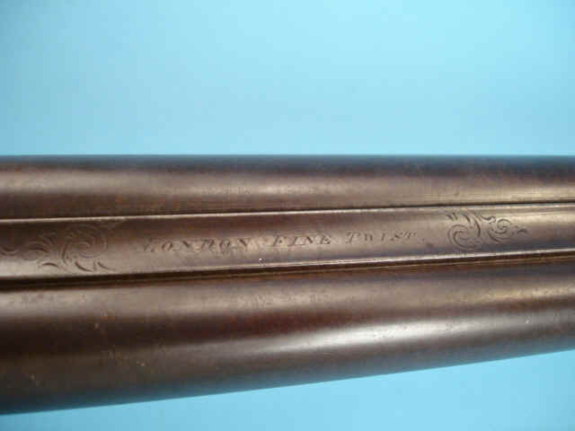 10 gauge, 30 3/8-inch damascus barrels with rib marked: London Fine Twist.
