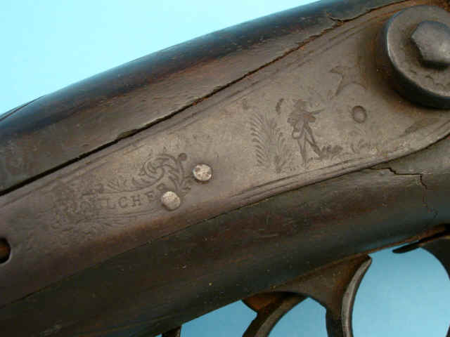 12 gauge, 30 1/4-inch barrels with concave rib. Back action lock marked: G. Goulcher.