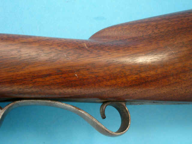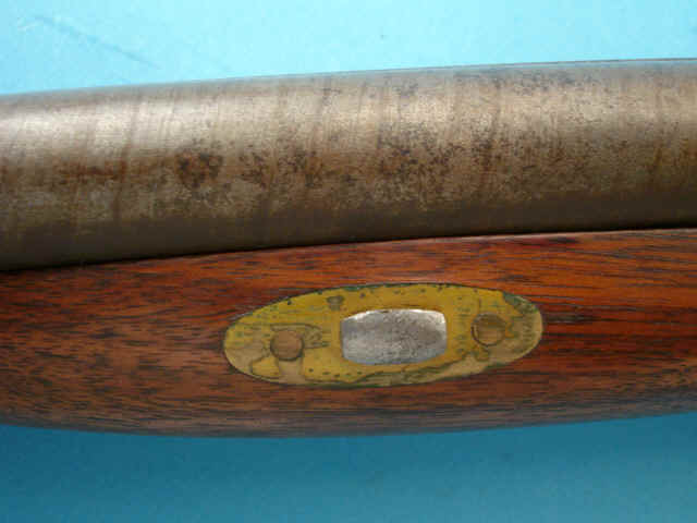 Condition: Very good. Gray patina to steel, pisting, wear; restocked,