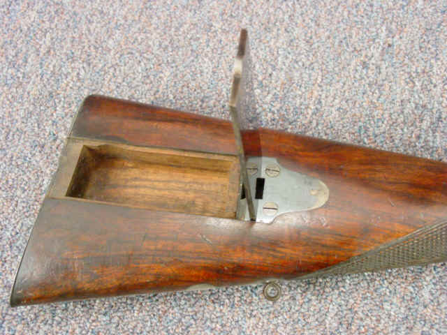 very old refurbish; some wear and light patina; locks and buttplate gray and brown patina,