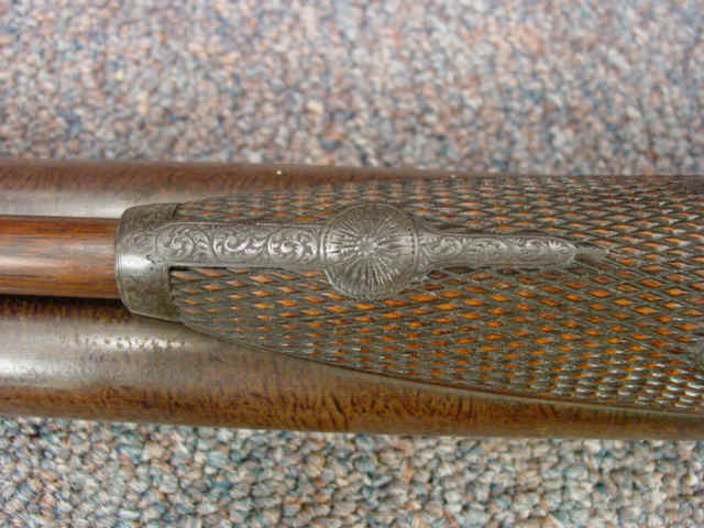 barrel; 26-inch side by side Damascus finish barrels, with top of rib inscribed; H.