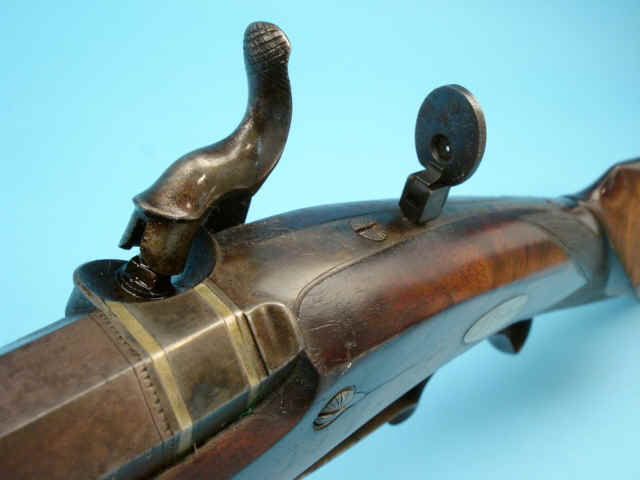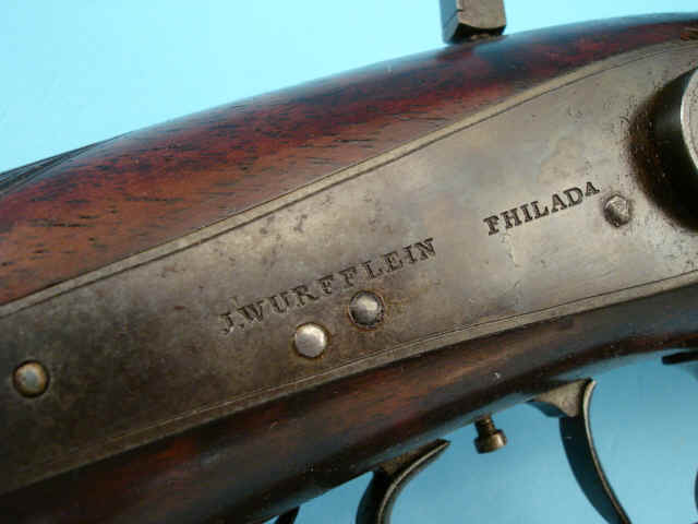 J. Wurfflein, Philada. Two inlaid silver bands at breech. Case-hardened tang, flip-up tang