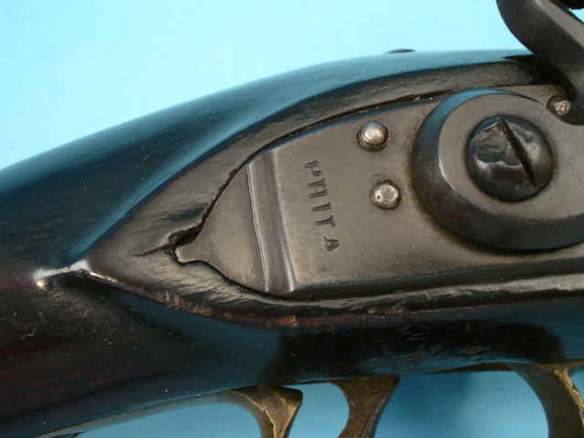 of hammer, PHILA vertically to rear; brass mountings; steel with browned finish; walnut