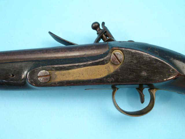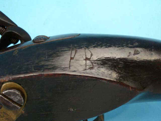 to brass; replacement hammer and ramrod; stock with nicks, wear; light cracks by