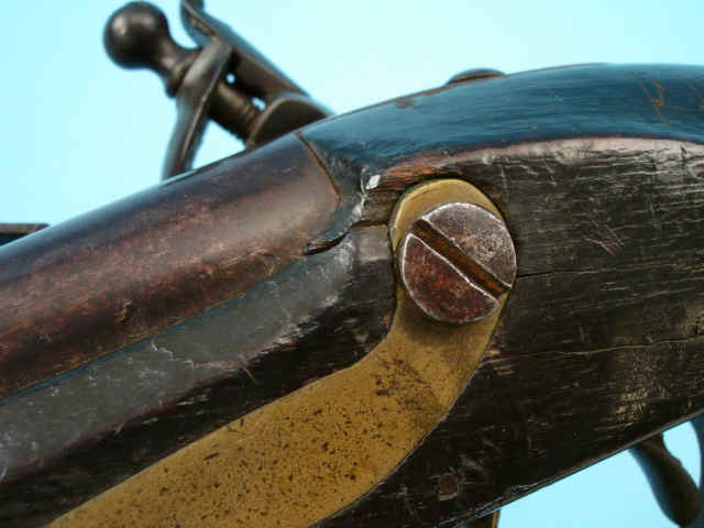 sideplate; stock shortened at muzzle due to split, which has been partially repaired.