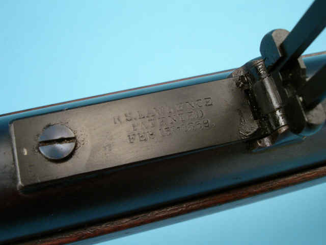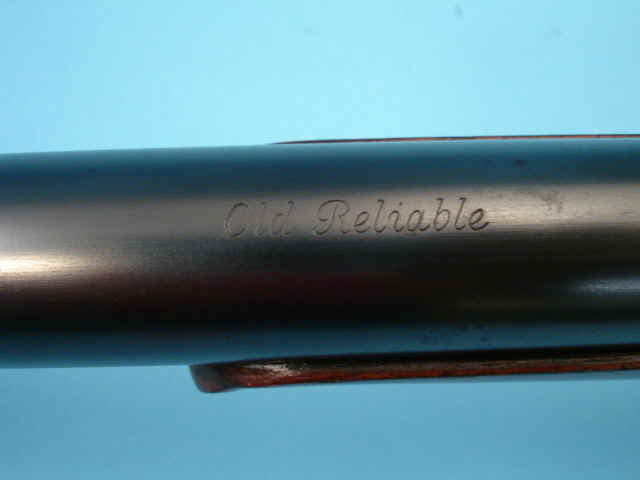 front sight and ladder-type rear sight. Top of barrel marked: Old Reliable/Sharps Rifle