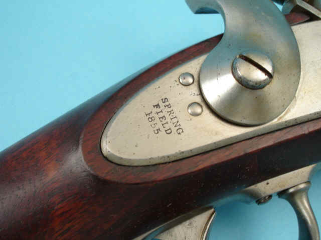 eagle]/U.S./Spring/field/1855. Standard walnut stock. No inspector cartouche present.