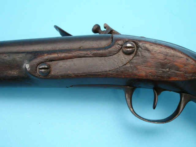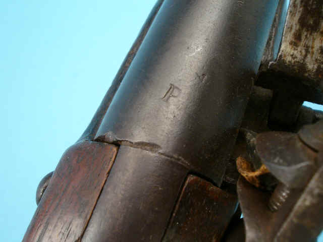 .75 caliber smoothbore, 12 1/4-inch round barrel marked P at breech; lock with pointed