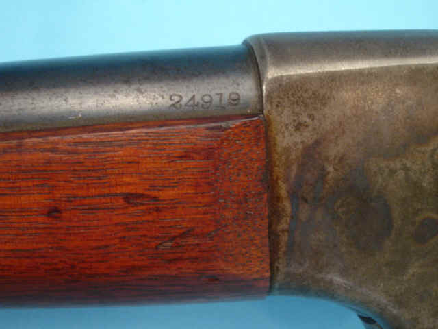ladder-type rear sight. Blued finish. Barrel marked at breech: 24919. Two case-hardened