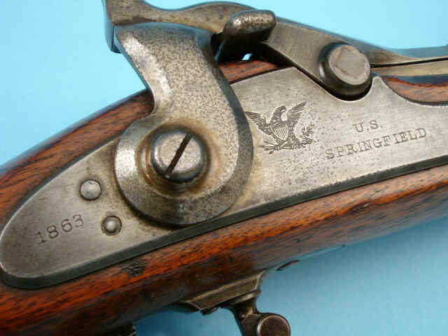 eagle]/U.S./Springfield/1863. Standard walnut stock with TWP inspector cartouche.
