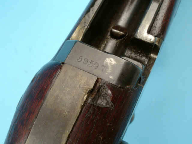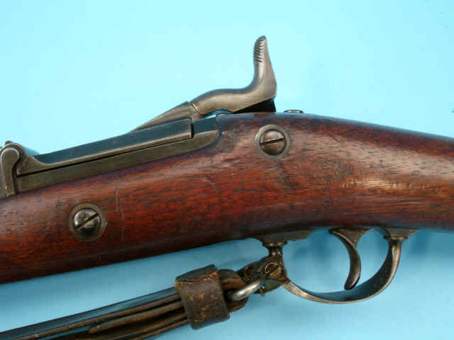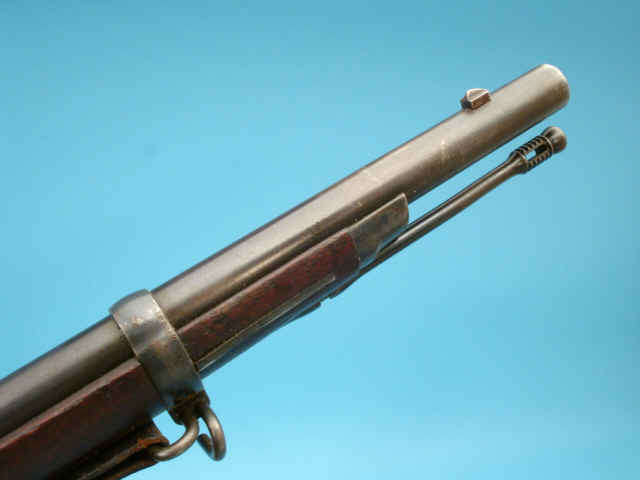 "P" cartouche behind tang. Steel ramrod. Sling mounts. Period leather military