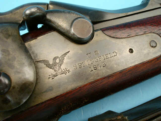 eagle]/U.S./Springfield/1873. Standard walnut stock with ESA cartouche. Circle
