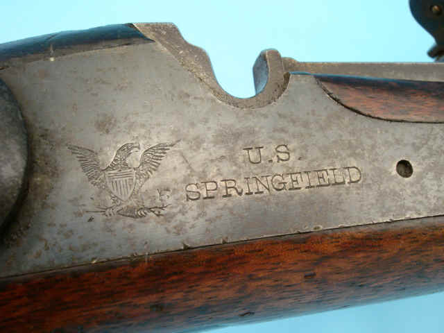 low-arch breechblock marked: U.S./Model/1873. Standard martial blue hammer and lockplate.