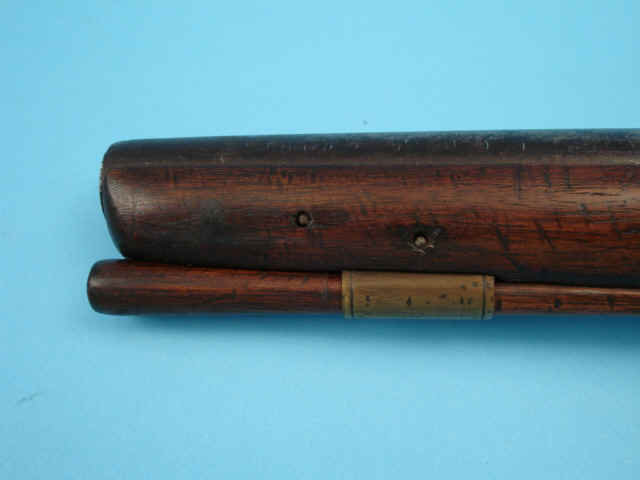 mountings; steel with browned finish; walnut stock and ramrod. Steel belt hook secured by