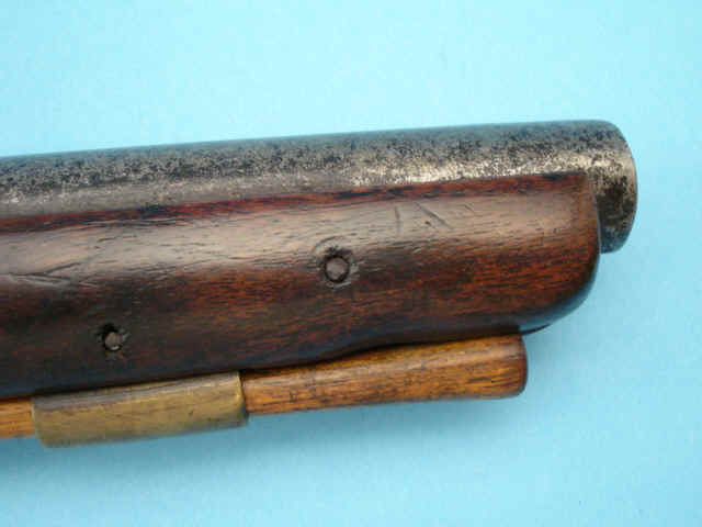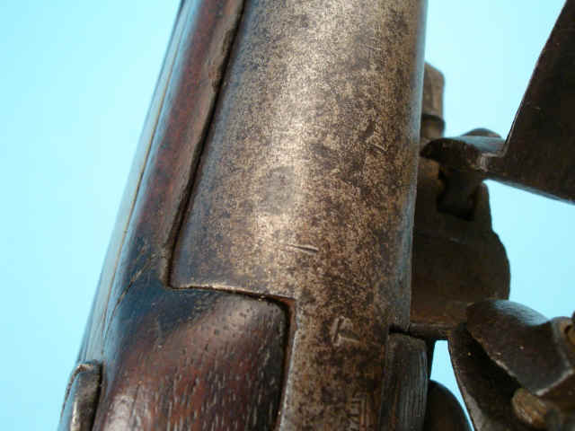 .62 caliber smoothbore, 9 7/8-inch pin-fastened round barrel with sunken P marking at