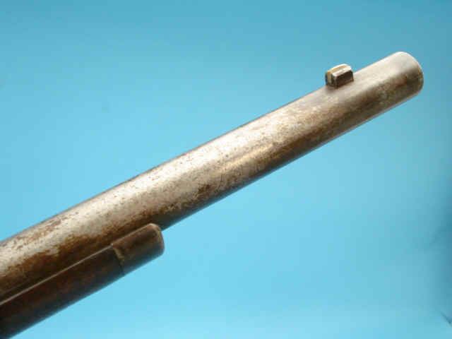 rear sight. Standard barrel markings. Three barrel bands. Drop-block action with pellet