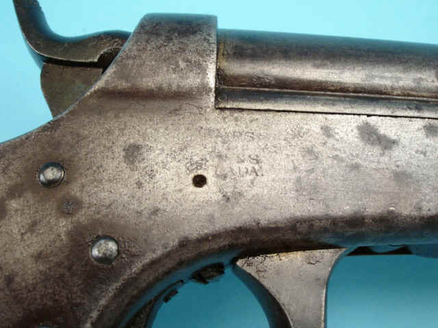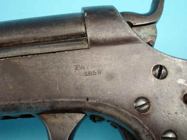 sight. Left side of frame marked: Pat???/1859. Fire-blued hammer. Serpentine breech lever.