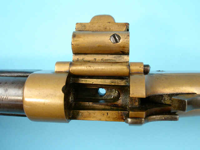 single steel barrel band. Brass frame, triggerguard and buttplate. Frame marked: James