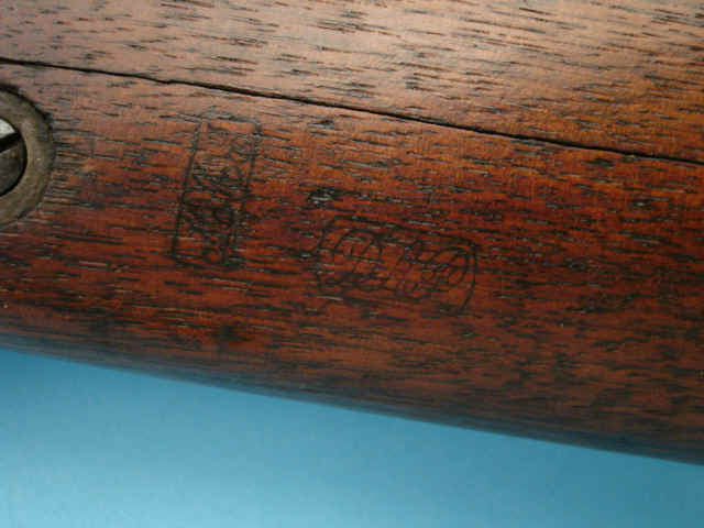 Walnut stocks with faint cartouche present behind saddle ring bar. Sling mount.