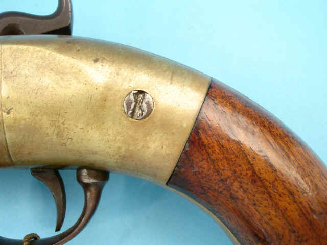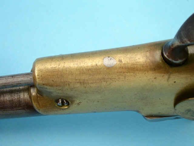 finished bright, as was brass frame; left side of round barrel at breech with stamping: