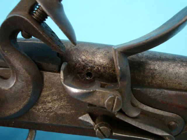 on breech; date 1818 at barrel breech; lock with American eagle motif over U S; at tail of