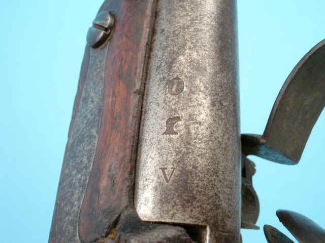 .69 caliber smoothbore, 10 7/8-inch round barrel, with sunken P over eagle head over V