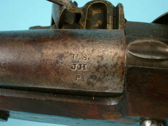 .54 caliber smoothbore, 8 1/2-inch round barrel, with US/JH/P on breech; lock with