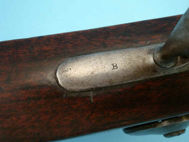 stock; B inspector letter mark on forward triggerguard tang and on sideplate. Lock has
