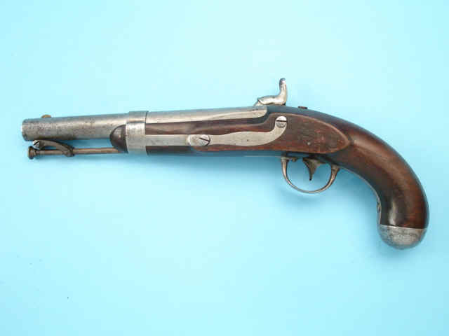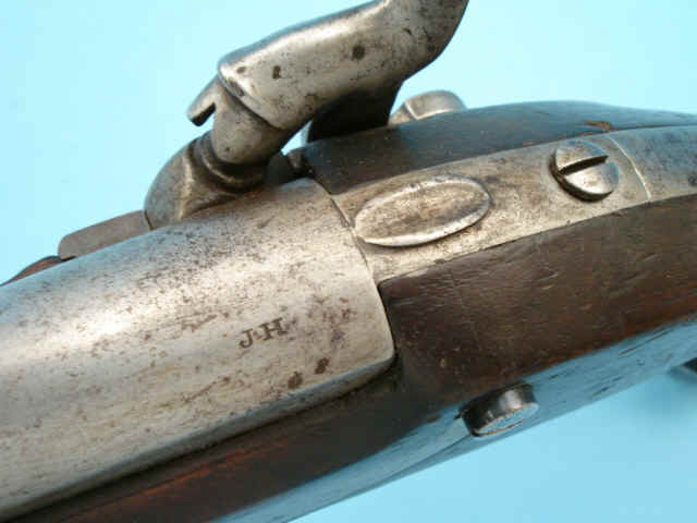 Rare Single Shot U.S. Martial Percussion Pistol by Unknown Maker, Marked JH and with