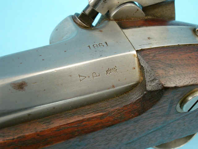 three-position leaf sight. Breech marked: V/P/[eaglehead]/1861. Polished steel lock