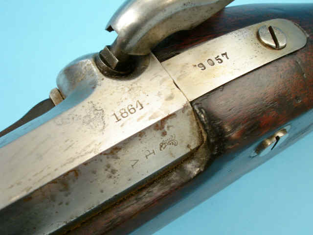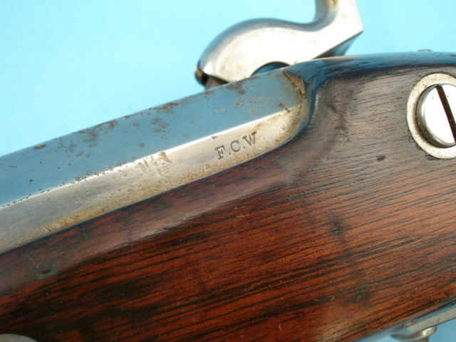 Breech marked: V/P/[eaglehead]/F.C.W.(Frank. C. Warner)/1864. Lock marked: [spread