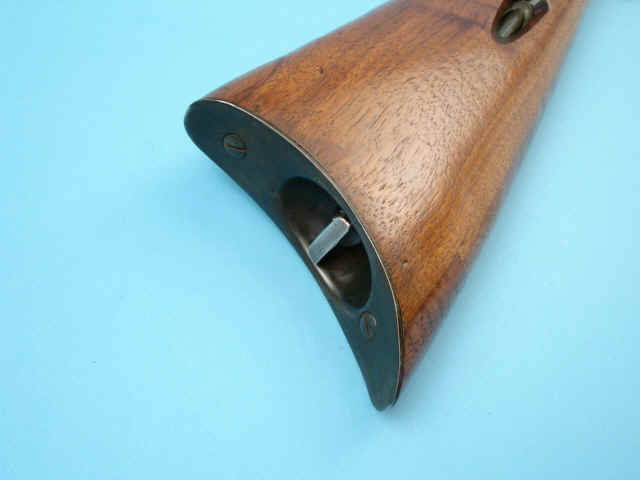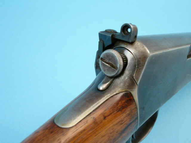 front sight, vacant mid-sight and side-mounted Lyman compound peep sight. Blued finish.