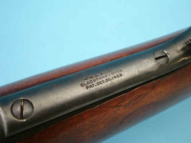 near muzzle; finish wear to fore-end cap and to muzzle; lever and hammer retain fair case