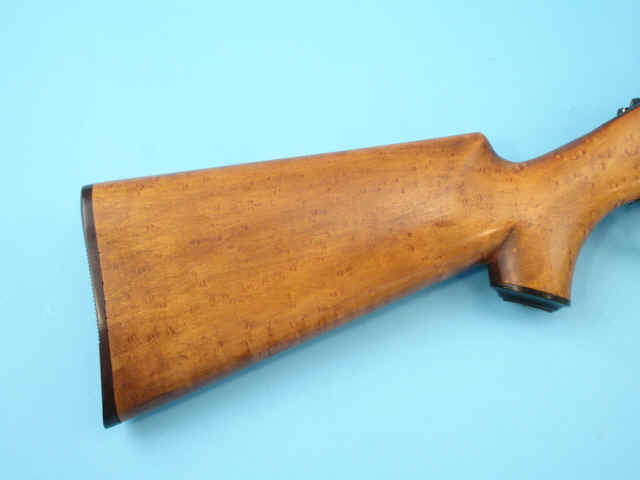 Serial number 24209; .22 caliber; 24-inch heavy replacement barrel; blued finish; bird's eye maple stock with painted fore-end; Winchester proof mark next to serial number; Redfield scope mount; no sights; receiver and scope tapped for mounts; no sling swivels; composite butt plate and gripcap; magazine included.