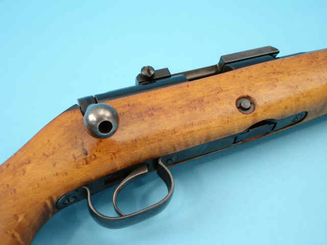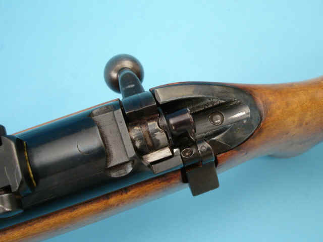 Condition: Fair overall; retains approximately 80% of re-blued finish; scattered discoloration and corrosion throughout; wear to rear of trigger guard; wear to bolt knob and to bolt finish; stock is good overall; minor handling and storage marks; average bore.