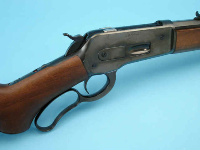 Serial number ES0015; 45-70 Government caliber; 26-inch octagonal barrel; blued finish; walnut stock; brass bead front and buck horn rear sights; blued steel butt plate; red Winchester marked cardboard box with styrofoam insert; includes manual