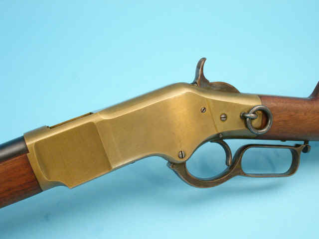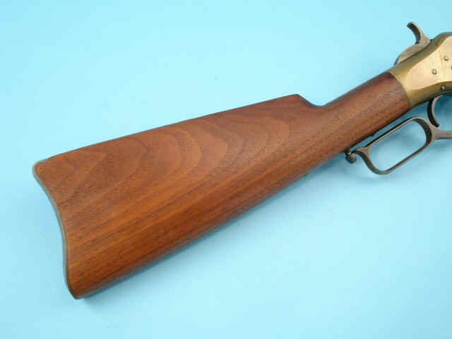 plain brass frame and buttplate; case-hardered cocking lever, buttplate and hammer;