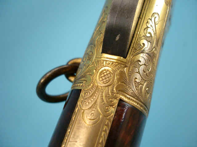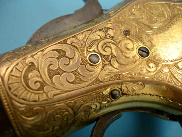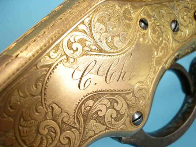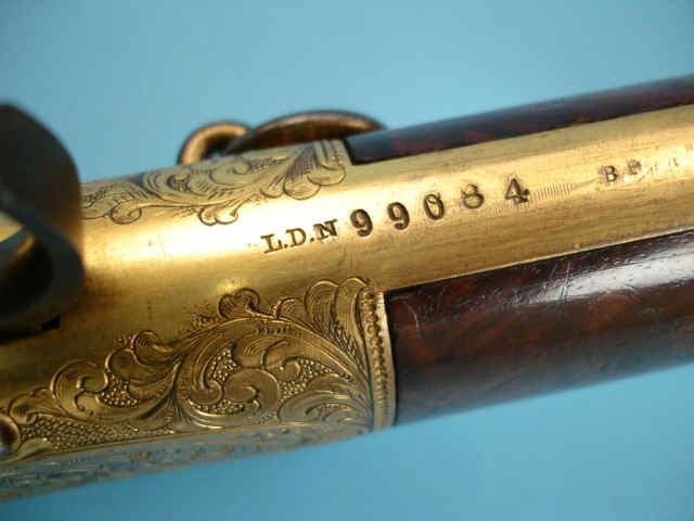 on lower tang, to left of serial number marking. Gold-plated, with nickel-plated lever;
